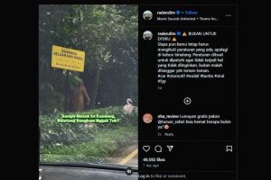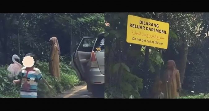 Dalam video viral yang beredar di media sosial, terlihat keluarga tersebut mengabaikan papan peringatan yang bertuliskan “Dilarang Keluar dari Mobil” dan malah berjalan-jalan di area satwa lepas.